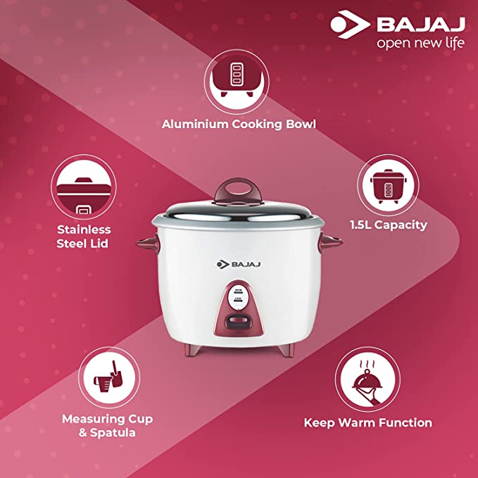 - Total Volume-1.5 Litre ; Raw Rice Capacity-0.9 Litre