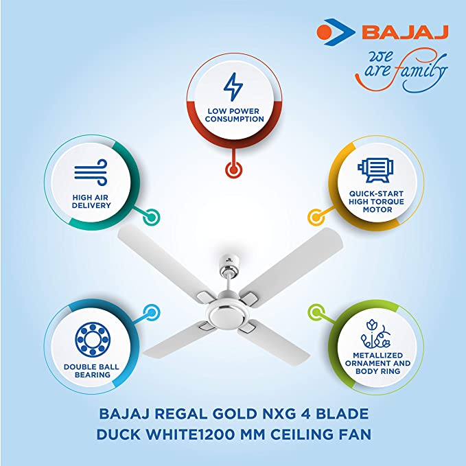 - Metallized ornament and body ring : Adds the bling to your fan;Quick-start high torque motor : Provides instant comfort by achieving high performance quickly