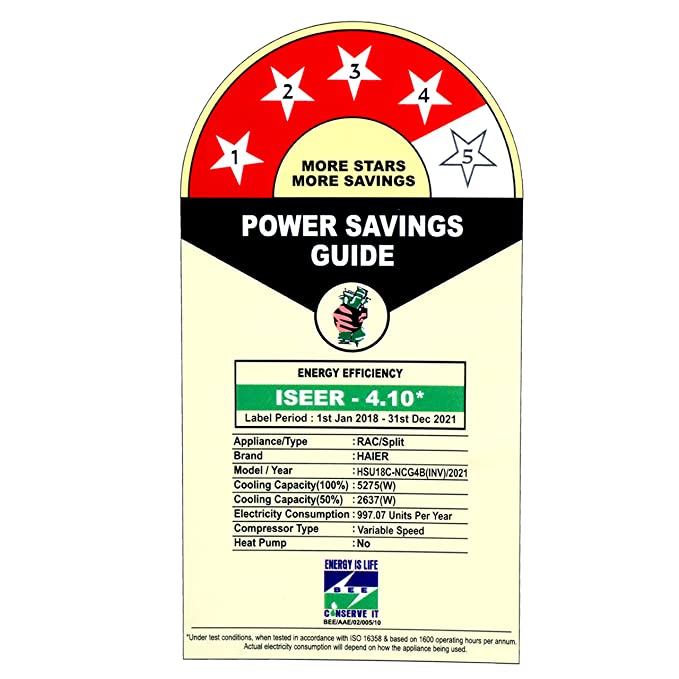 - 4 Star BEE Rating 2021 : For energy savings upto 20% (compared to Non-Inverter 1 Star)