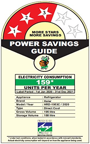 • Energy rating: 3 star, Annual energy consumption: 159 per year