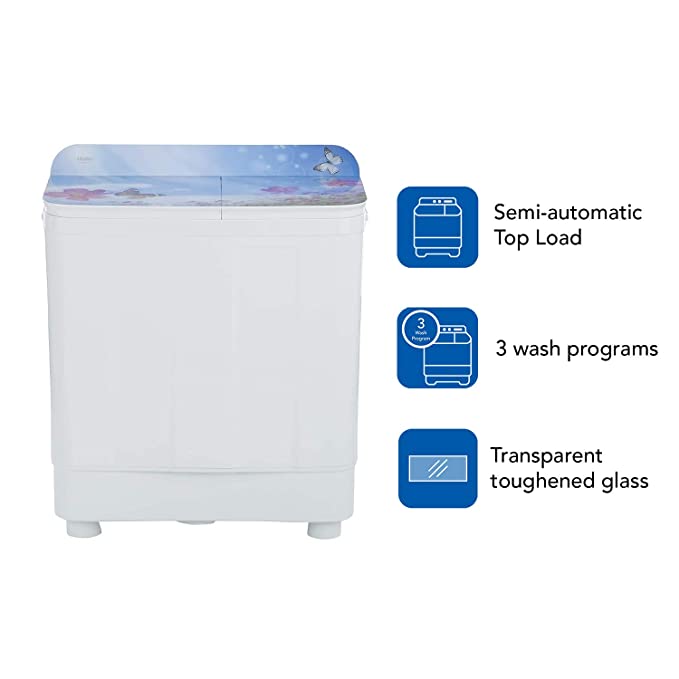 Haier 9.5 Kg Semi-Automatic Top Loading Washing Machine (HTW95-178, Blue Floral)