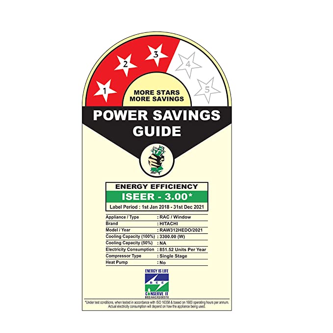 - Energy Rating: 5 Star : Best in class efficiency | Annual Energy Consumption (as per energy label): 1277.65 units | ISEER Value: 3.09