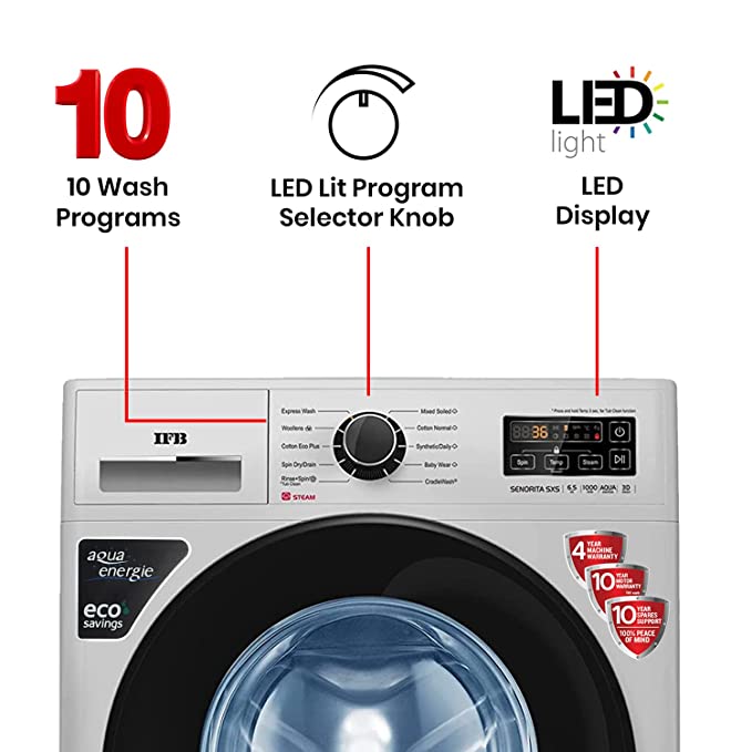 - TRISHIELD PROTECTION : IFB washers come with India’s best warranty 4 year machine warranty + 10 year Motor Warranty + 10 year Spares Support.