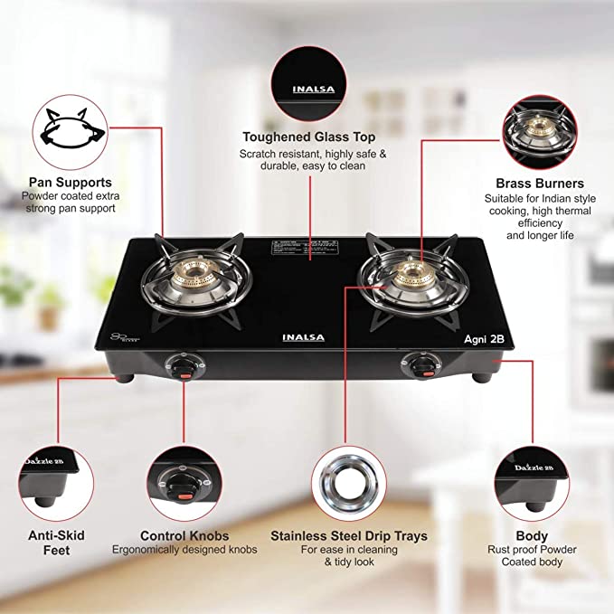 Home Shop INALSA Cooktop 2 Burner Agni BK