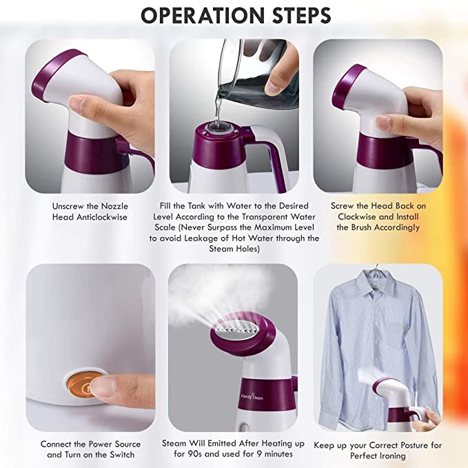 - Automatic Continuous Steam – Handy Steamer releases powerful continuous 15g/min & heats up in just few seconds. It generates wrinkle-removing steam flow to ensure professional results:fast ironing and efficient removal of the most stubborn creases , Cord Length : 190cms , Power Supply :AC 230 V , Heating Up Time (Min) : Less than a 1 min. Max. Steam (gm/min.)
