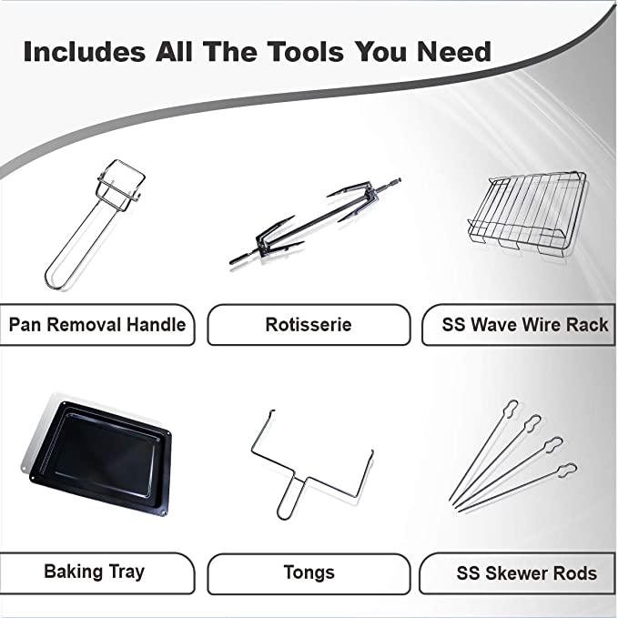 - ROTISSERIE & CONVECTION- Convection baking allows for much faster cooking times as well as more consistent heating for superior results. Rotisserie gives you outstanding results on anything from roasted meats, fish to quiche, pizzas & more