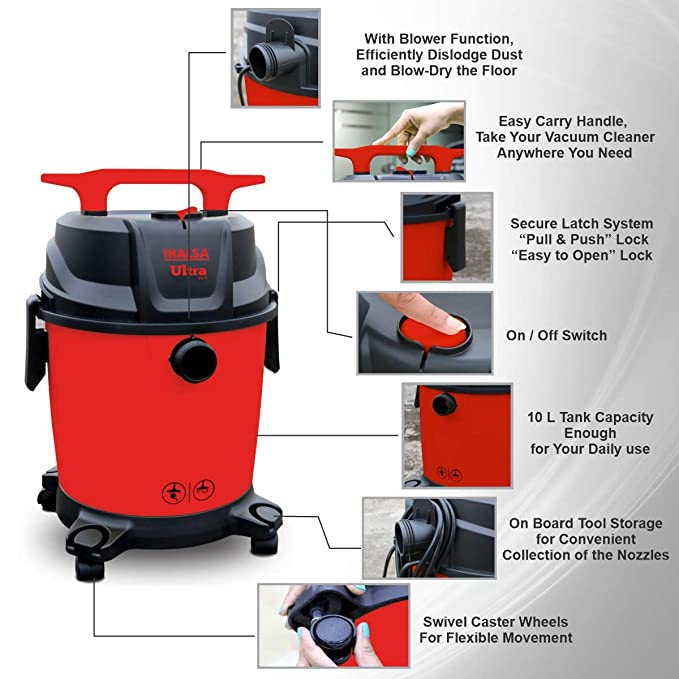 - Blower function- Ultra WD10 has a powerful blower that ensures highest airflow in accordance with power so as to get best results. This blower cleans narrow, hard- to-reach areas with a lot of ease