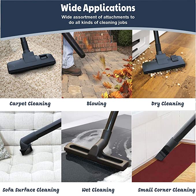- Different cleaning tools -Dry/Wet Brush for smooth surfaces.Floor Cum Carpet Brush for carpet & floor cleaning.Round nozzle is for small & soft surfaces.2-1 crevice nozzle cleans hard-to reach corners