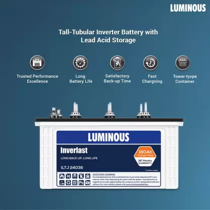 • Next generation tubular Jumbo battery with better charge acceptance and long Back up. 20% more acid volume per ampere hour than ordinary tubular batteries. It has high purity, corrosion-resistant proprietary spine alloy composition for long battery life. Extra-strong, flexible oxidation-resistant gauntlet for better performance and long life. Puncture-resistant polyethylene separator which minimize the possibility of internal short circuits. Best Solution for areas with long and frequent power cuts. Easy maintenance with level indicators.