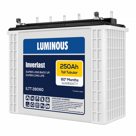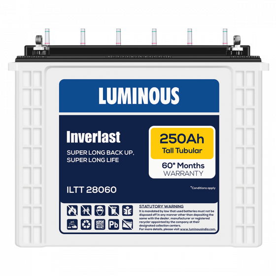 - Next generation tall tubular battery with better charge acceptance and long Back up